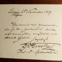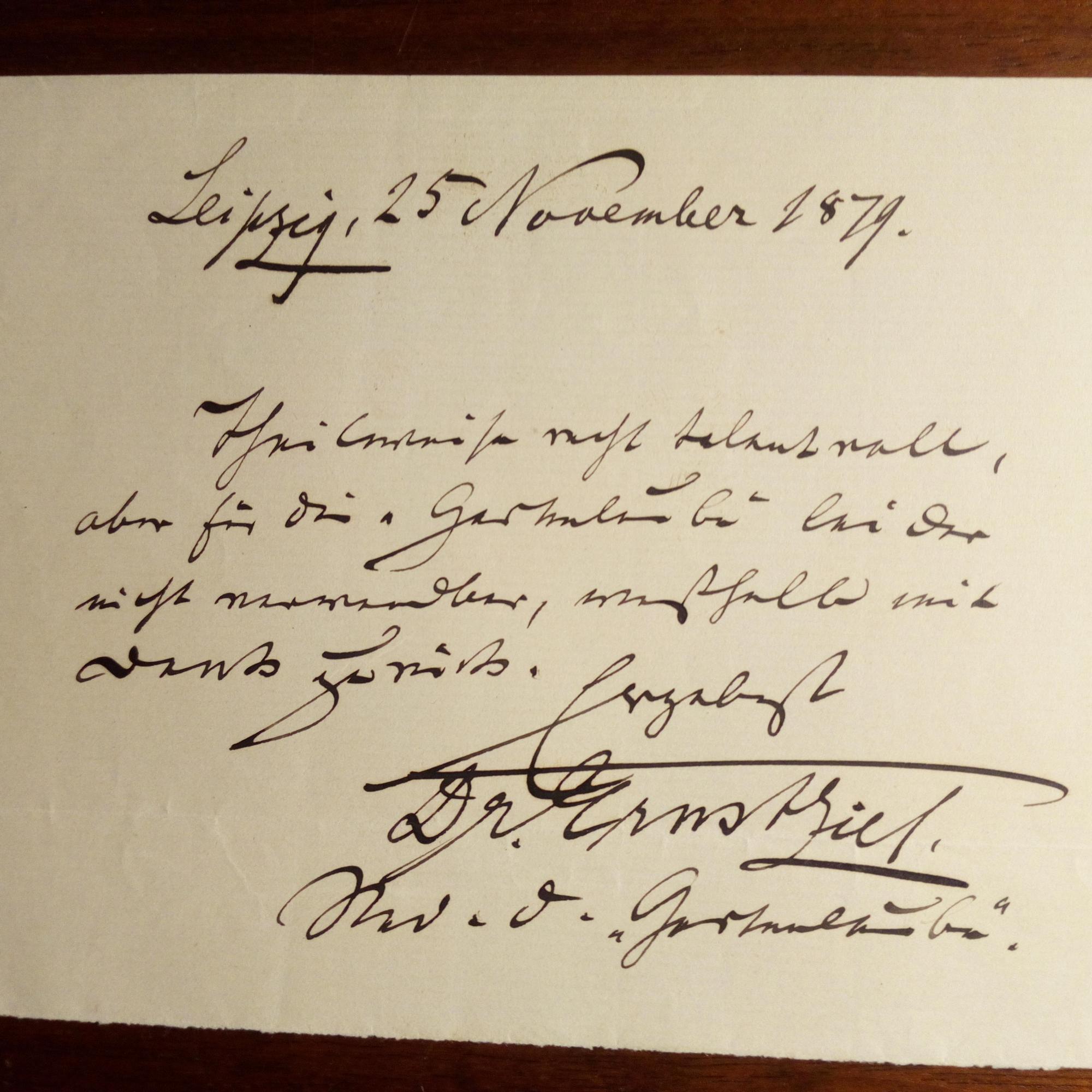 1841-1921, Literaturhistoriker und Schriftsteller, Chefredakt. der "Gartenlaube" - Schönes e. Billett m. U., Leipzig 25.11.1879, ca. kl. 8° quer: ...für die "Gartenlaube" leider nicht verwendbar... Beiliegt kl. 8°quer-Blatt m. e. Vierzeiler u. U. "Wissen ist des Lebens Preis-/ Glückselig wer weiß!..."