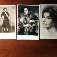 1926-2020, Schauspielerin - 3 frühe Pfo., je mit U. (eine gestempelt). Dazu aus den 70er Jahren: 3 x ausführl. e. Dankeszeilen und U. unter auf 4° mont. Farb-Pfo. und Pfo. mit U.