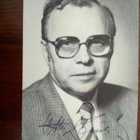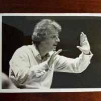 1943-2021, Komponist und Dirigent in Dresden - Pfo. (ca. 8°quer, Hochglanz, bei Proben, von Helga Wallmüller). Auf Rückseite e. Grüße und U.