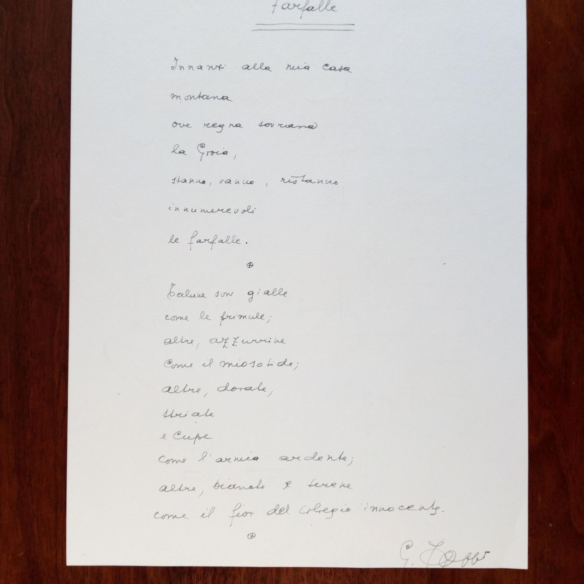 1896-1952, schweiz. Literaturhistoriker und Schrift-steller - 4°-Blatt m. e. Gedicht (10 Z.) u. U., Luzern 11.5.1929. "Canzone notturna del viandante (inutazione dal tedesco di Goethe)...". Rückseite ähnl. (das Gedicht "Farfalle", 17 Z.) m. U. (diese ger. beschn.).