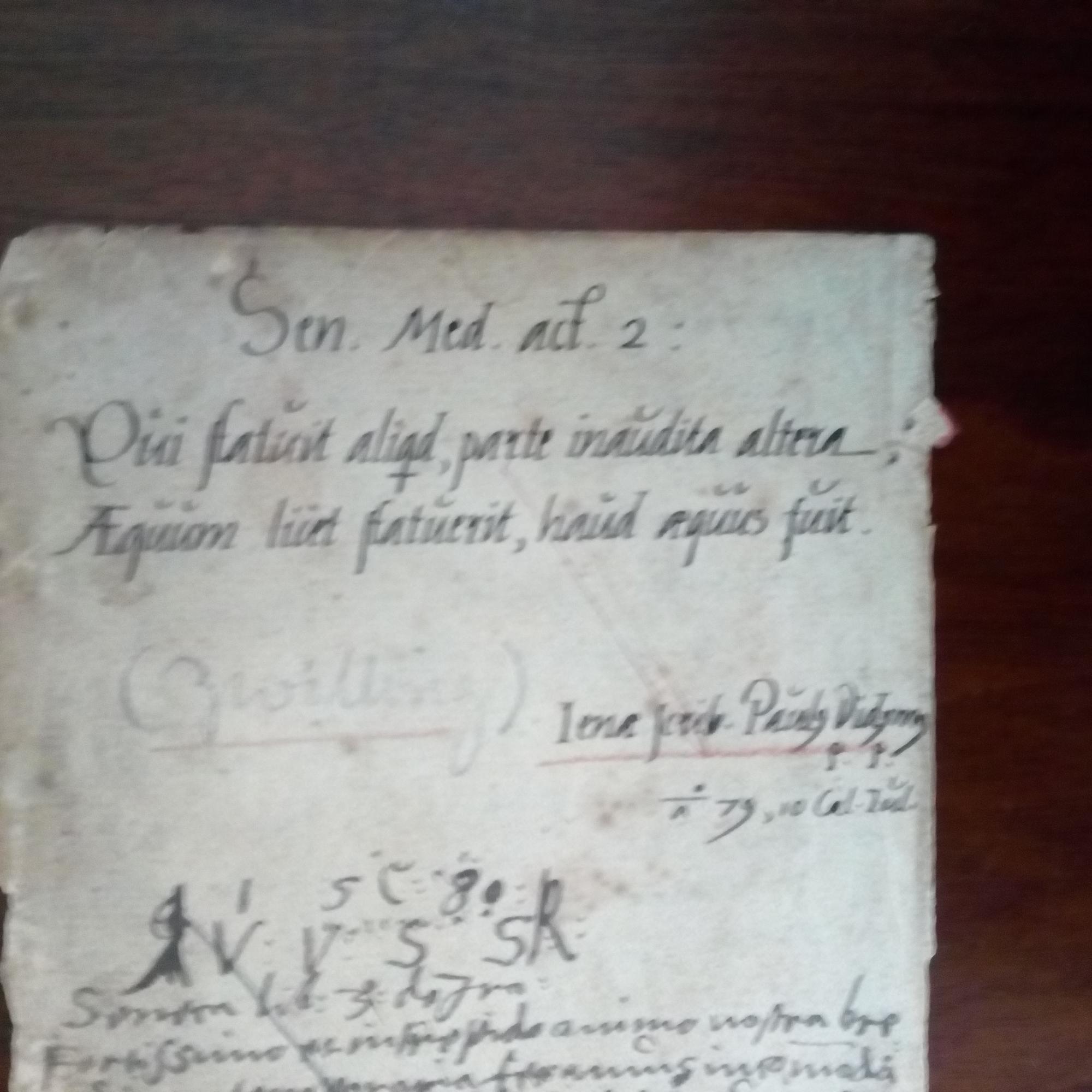 1547-81, neulatein. Epiker, Philosoph, Rektor der Universität Jena - Blatt aus einem Album (kl. 8°, Altersspuren). Auf ½ S. Eintrag in e. Kalligraphie: "Sen. Med. act. 2:/ Qui statuit aliquid parte inaudita altera/ Aequum licet statuerit, haud acquus fuit./ Iena Scrib. Paulus Didymus p.p., a 79, 10 Cal. Iul.". (übers.: "Seneca Medea 2. Akt.: Handle gut und anständig, weniger anderen zu gefallen, eher um deine eigene Achtung nicht zu verlieren. Geschr. zu Jena Paul Zwilling p.p., 10.7.1579") Darunter und auf Rückseite 3 Einträge in latein. Sprache von and. Händen.