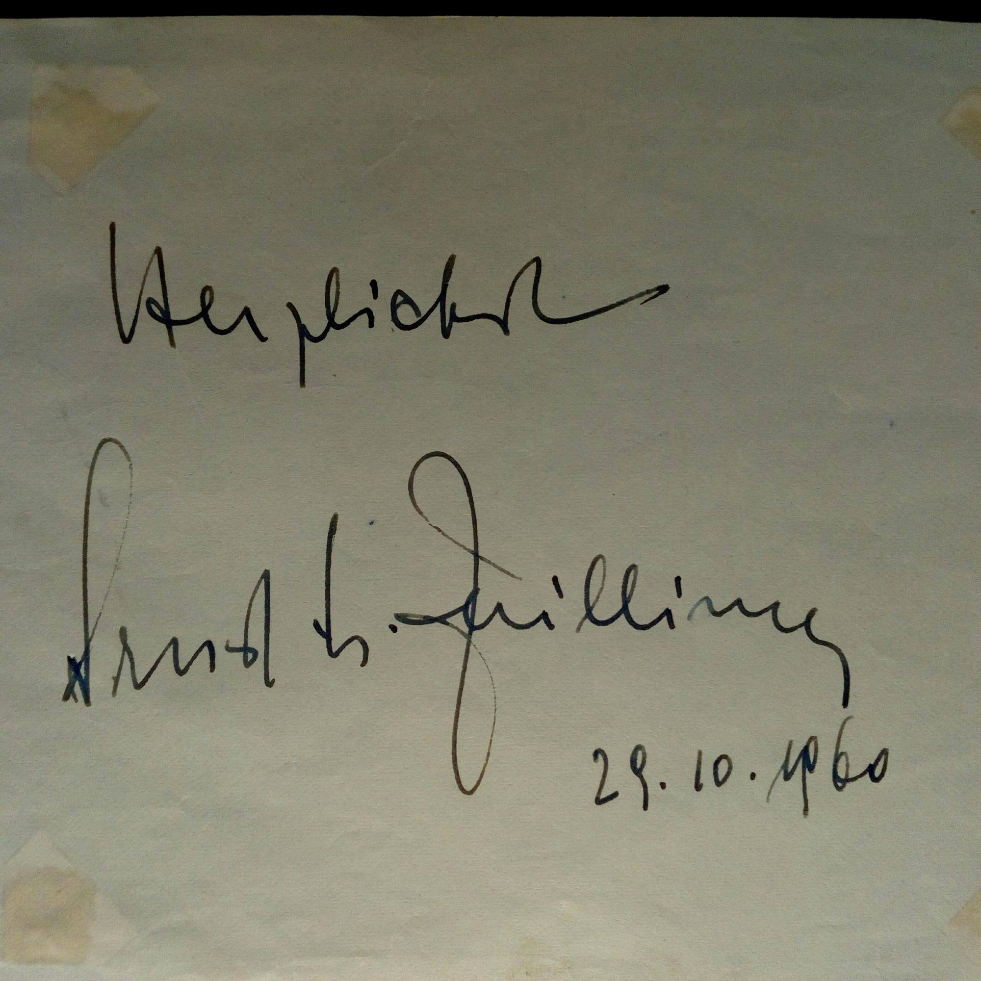1904-90, österr. Afrikaforscher und Reiseschriftsteller - 8°quer-Blatt mit großer E., U. und D. 29.10.1960, kl. Gebr.spuren. Beiliegt kl. Fragment mit U. und D. 21.4.1971.