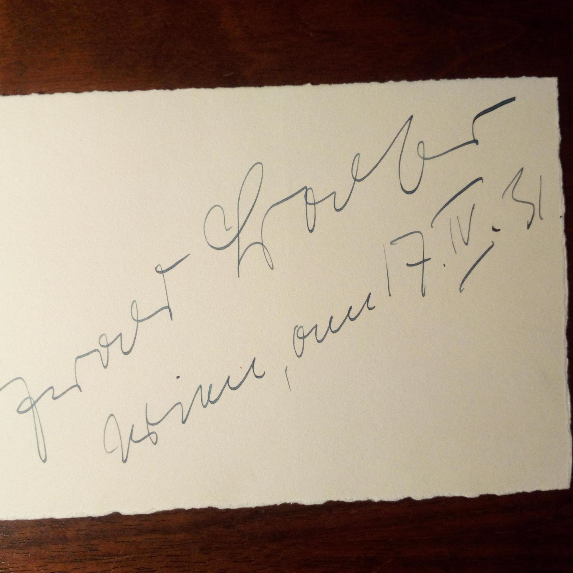 1898-1978, Schauspieler (Burgtheater) - Karte m. U., Wien 17.4.1931, m. postal. Umschlag. Beiliegt ähnl. von der Schauspielerin Auguste Wilbrandt-Baudius (1843-1937, Gattin des Schriftstellers Adolf von Wilbrandt). Bei dieser weitere U. im Absender.