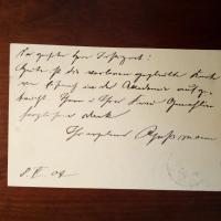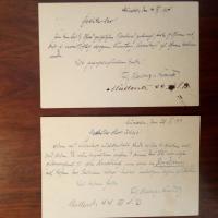 1874-1951, Maler - 2 e. postal. Postkarten m. U., München 1901. Adressat wie Nr. 18: ...wenn das Bild noch nicht photographiert ist, bitte Hanfstängl (Franz Seraph, 1804-77, Maler u. Fotograf) eine solche in Royalformat ... anfertigen lassen... Beiliegt Quittungsblatt eines Restaurants m. U., O. u. Jahr Berlin 1935 von Ernst Hanfstängl