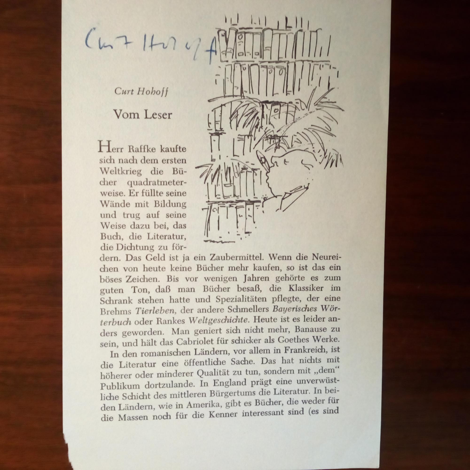 1913-2010, Literaturwiss. und Publizist - U. am Kopf seines Aufsatzes "Vom Leser" (aus einem Buch).