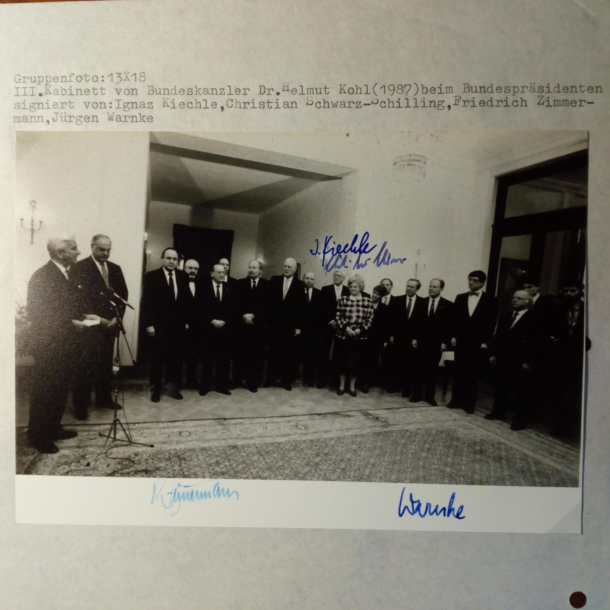 Kabinett Kohl beim Bundespräsidenten 1987) m. U. von Kiechle, Schwarz-Schilling, Zimmermann und Warnke.