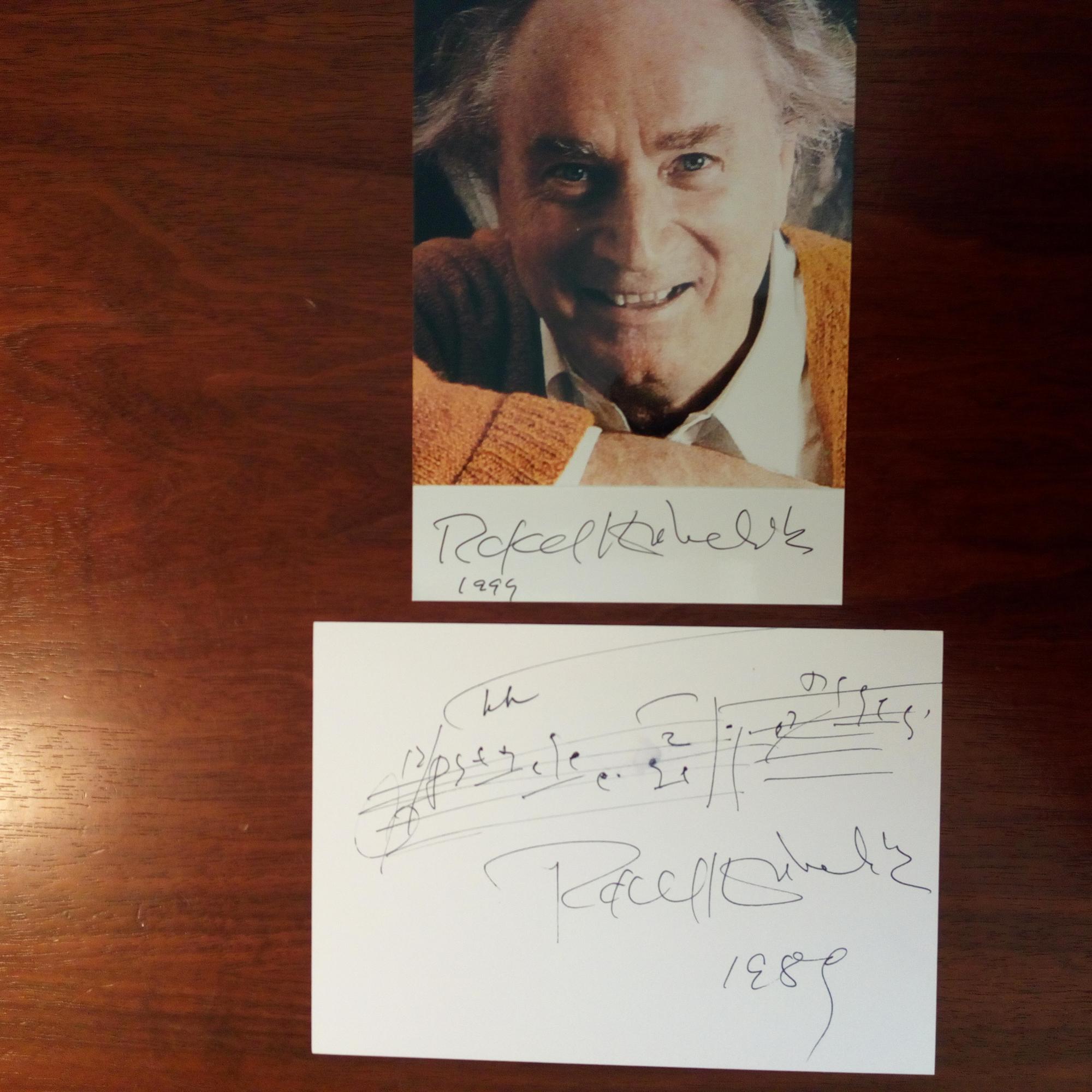 1914-96, tschech. Dirigent und Komponist - Karte m. e. Notenzeile (2 Takte) m. U. u. Jahr 1989, minimaler Wasserfleck. Beiliegt Farb-Pfo. m. U. und Jahr.