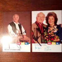 1927-2008, bayer. Volksschauspieler - 2 Farb-Pfo. (RTL), je m. U., eines auch m. U. seiner Frau Gerda St.