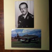 1913-94, Flieger im 2. Weltkrieg, später Bundeswehr-General - Foto seiner "Me 262" m. U. Beilage m. U.