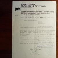 Br.kopf und Stempel des "Schutzverbandes Deutscher Schriftsteller" m. den 3 U. der Schriftst. Ludwig Renn (1889-1979), Hans Ostwald (1873-1940) und Theodor Bohner (1882-1963, als Vorsitzender), (Berlin) 3.6.1931, 1 S. 4°. An den Schriftsteller Rudolf Schneider-Schelde (1890-1956) in München: Fordern ein 1929 gegebenes Darlehen von 100,- RM zurück: ...sind uns der allgemeinen schlechten wirtschaftlichen Lage bewusst und erklären uns auch zur Entgegennahme von Raten bereit...