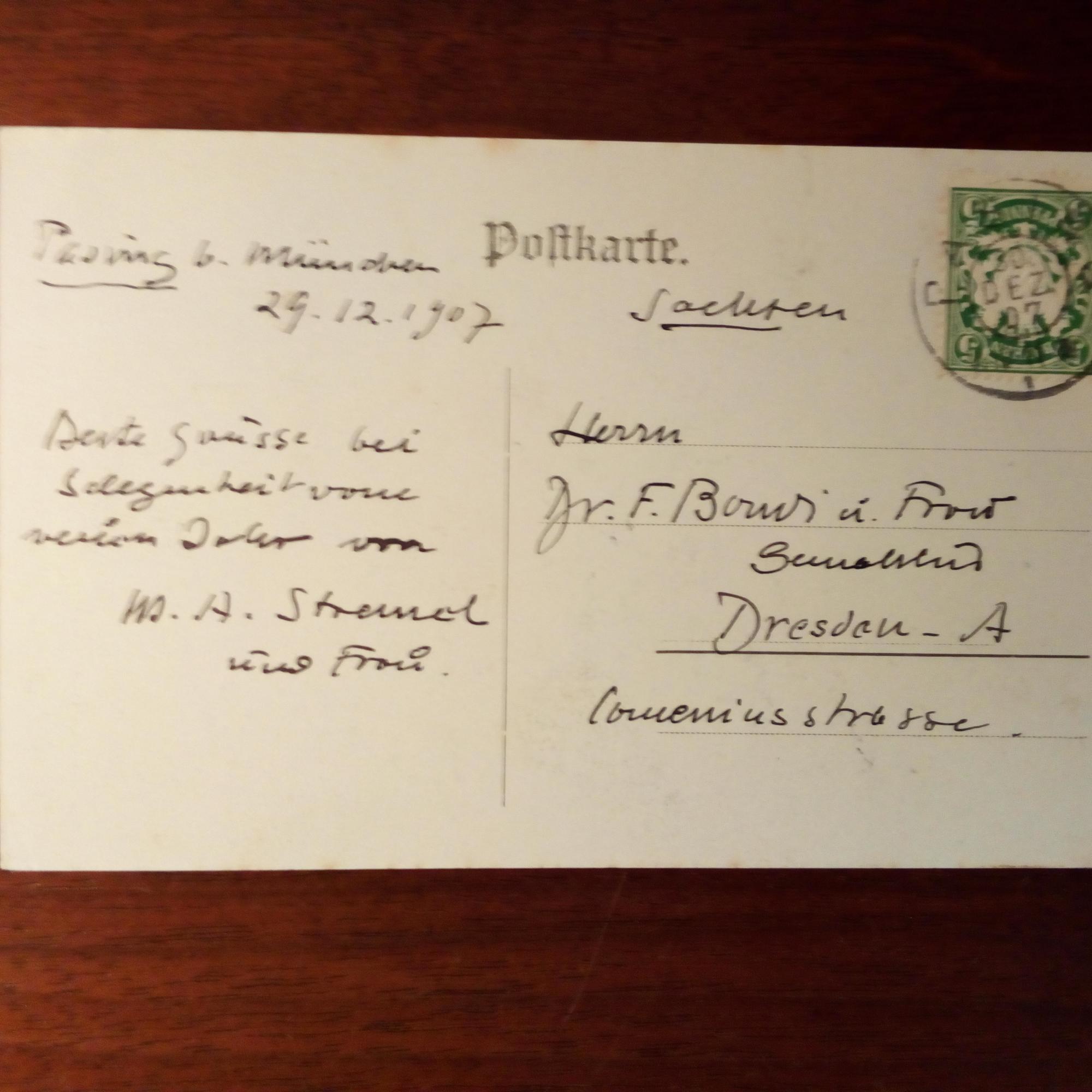 1859-1928, Maler, Freund von Uhde - E. postal. Ansichtskarte (München), Pasing 29.12.1907. "Beste Grüße bei Gelegenheit vom neuen Jahr...".