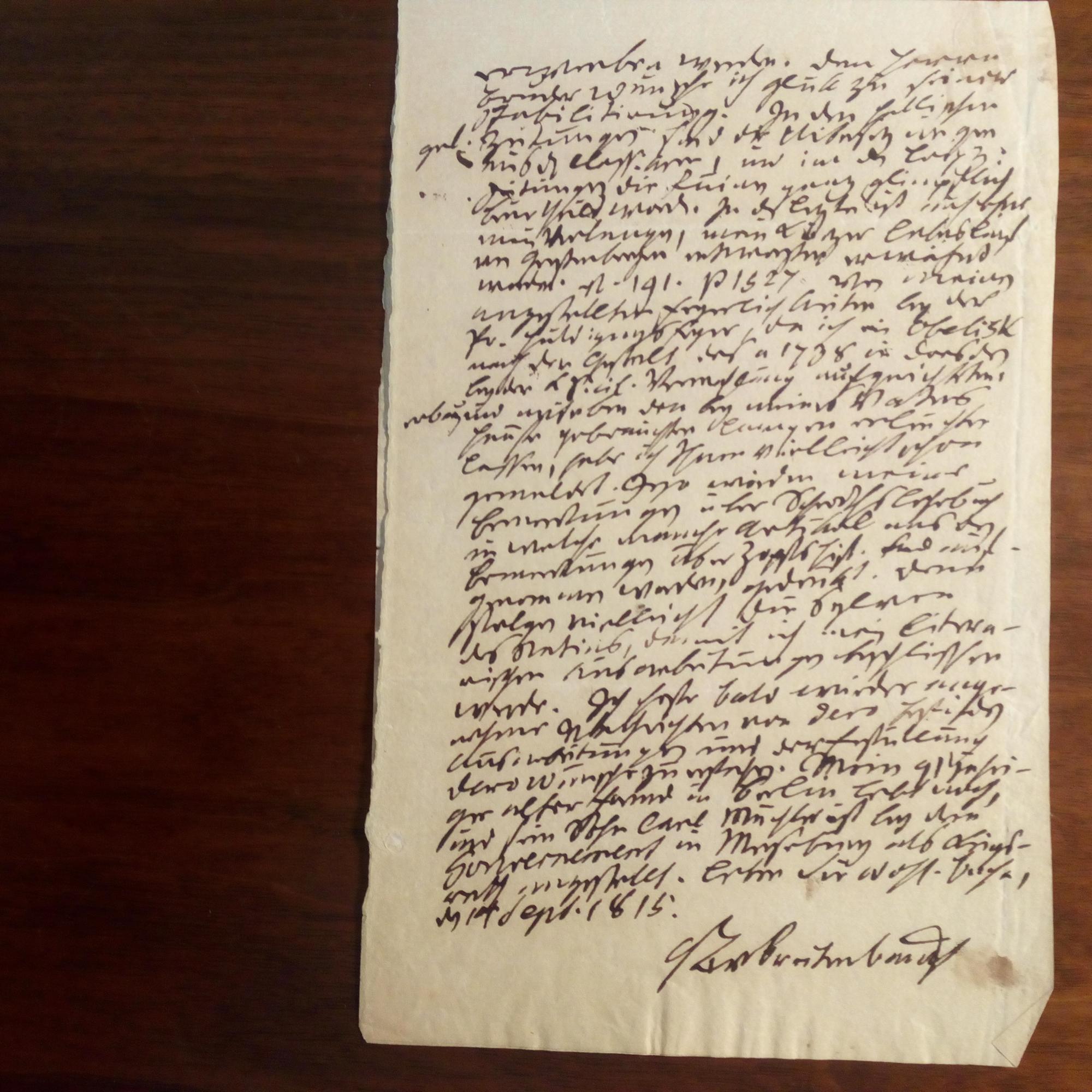 1731-1817, Schriftsteller - E. Br. m. U., Bucha 14.9.1815, 2 S. 8°, kl. u. dicht geschr., minimale Alterssp. Betr. seiner Veröffentlichungen, will das Bild eines Obelisken ausleihen u. gibt Auskünfte über Bekannte, u.a. den Herzog von Braunschweig.