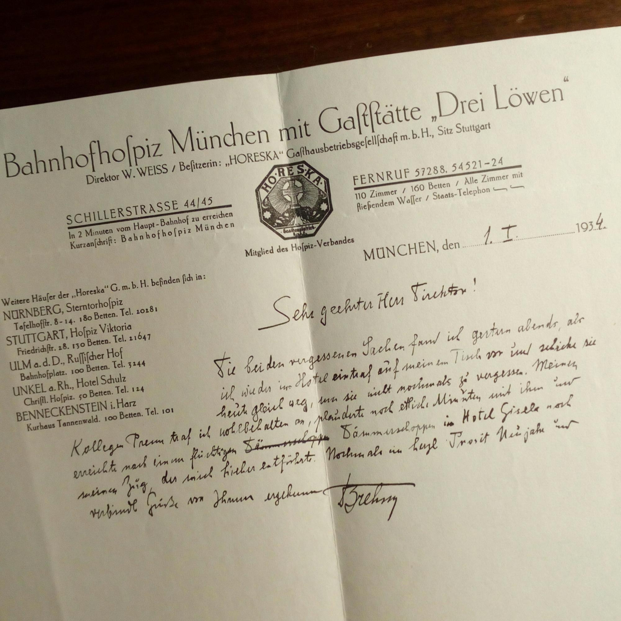 1879-1970, Botaniker - E. postal. (Waldsassen 7.1.1930) Ansichskarte (Pfo. als Patient) mit U. An den Zoologen und Heimatforscher Friedrich Prenn in Kufstein: ...ist eine Aufnahme von mir aus dem Linzer Krankenhaus, wo ich im Sommer operiert wurde (acute appendicitis)... Beiliegt ein e. Br. mit U., 1.1.1934, Br.kopf der Gaststätte "Drei Löwen" in München, ¾ S. kl. 4° quer, an einen "Herrn Director": Neujahrsgrüße und Schilderung seiner Begegnung mit P.