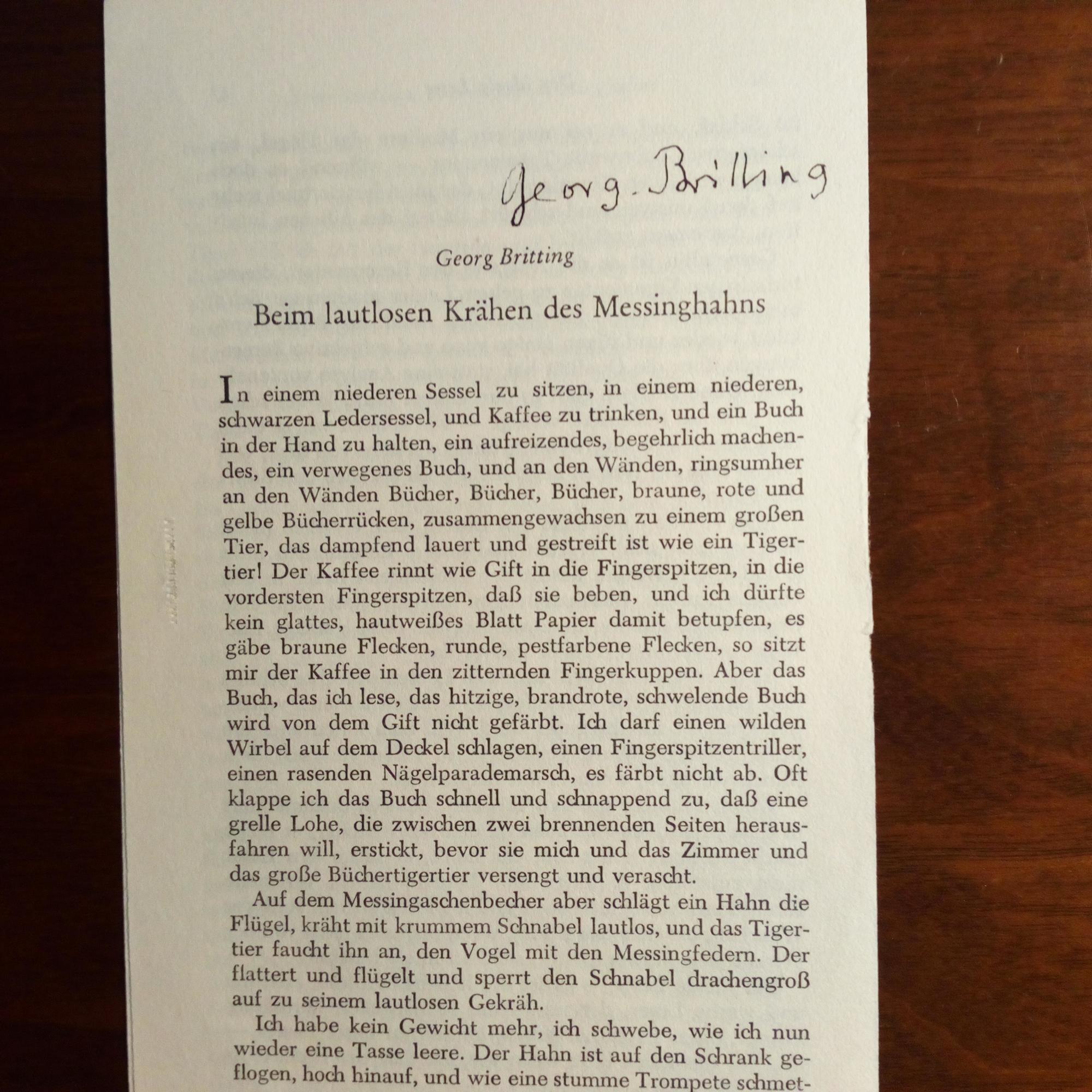 1891-1964, Schriftsteller - U. am Kopf eines Drucks s. Aufsatzes "Beim letzten Krähen des Messinghahnes" (aus Buch).