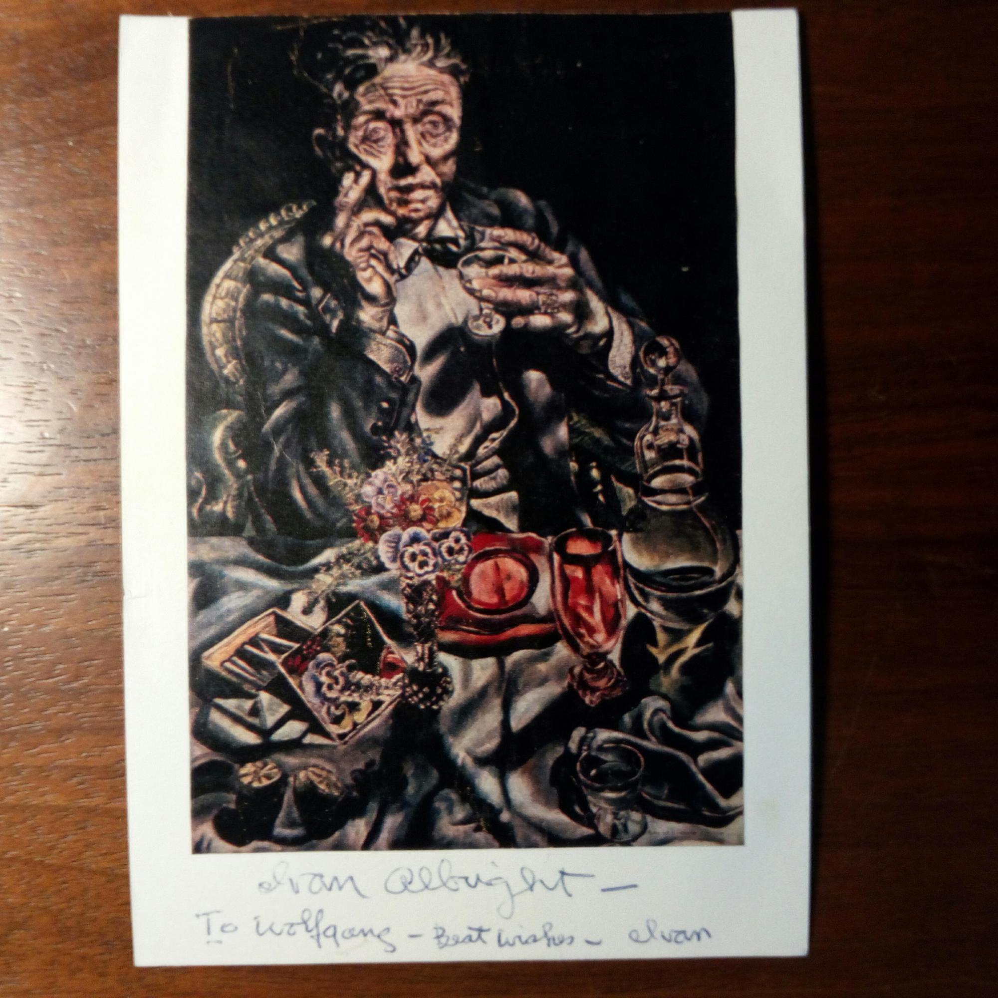 1897-1983, US-Maler - Karte m. mont. Foto eines seiner Werke (Selbstporträt, Druck) m. U. u. Widm.., ger. Gebr.spuren.