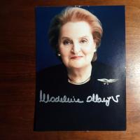 1937-2022, US-Außenministerin - Farb-Pfo. (ca. 8°) mit U. (Silberstift). Ger. Mont.spuren auf Rückseite.
