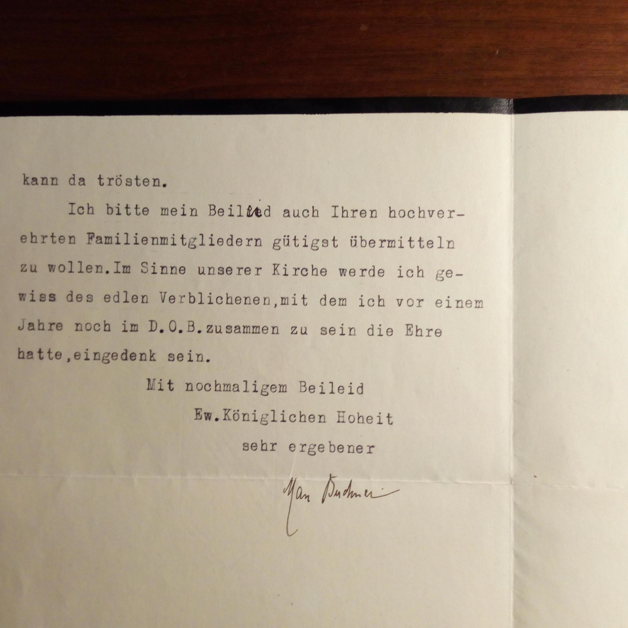1881-1941, kathol.-nationalist. Historiker - Brief mit U., München 9.1.1933, 1 ½ S. 8°, schwarzer Rand, mit e. postal. Umschlag (Abs.stempel). An Prinz Clemens von Bayern (1902-90): Kondoliert zum Tode seines Vaters, Alfons von Bayern. ...Als Historiker empfinde ich den Verlust, den das königliche Haus und der monarchische Gedanke gerade durch den Tod des an Volkstümlichkeit unerreichten Prinzen erlitten hat, doppelt schmerzlich...
