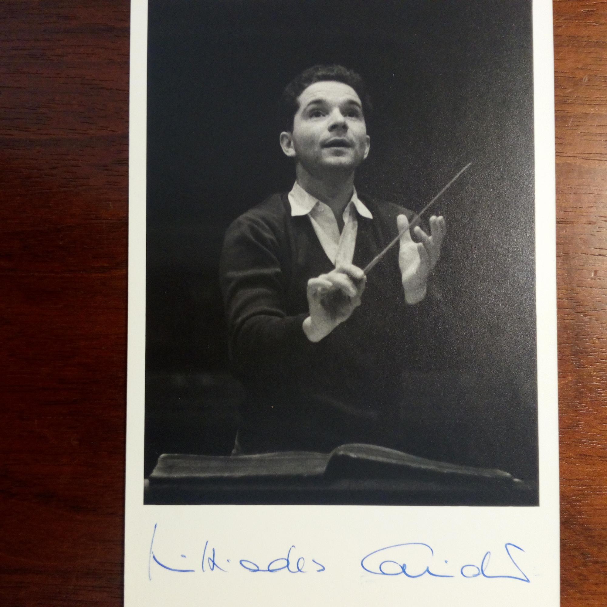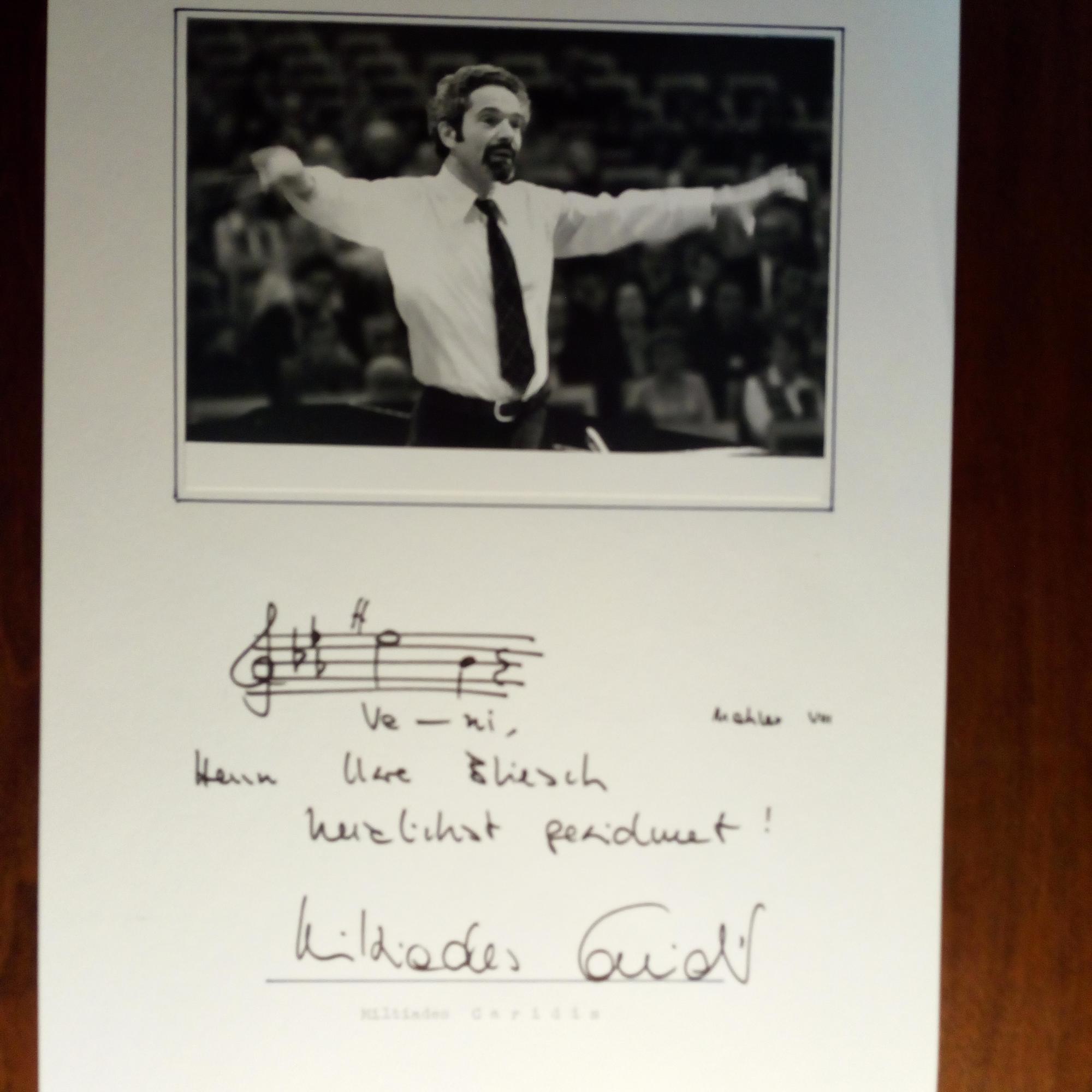 1923-98, griech.-dt. Dirigent - E. Notentakt, ("Mahler VIII"), Widm. u. U. unt. auf 4° mont. Pfo. (beim Dirigieren).