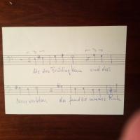 1926-2023, österr. Komponist - Fragment eines Notenblattes mit e. Notenzeilen (4 Takte, lt. Notiz aus seinen "Baal-Gesängen", Wien 22.3.2000). Auf Rückseite (diese fleckig) U.