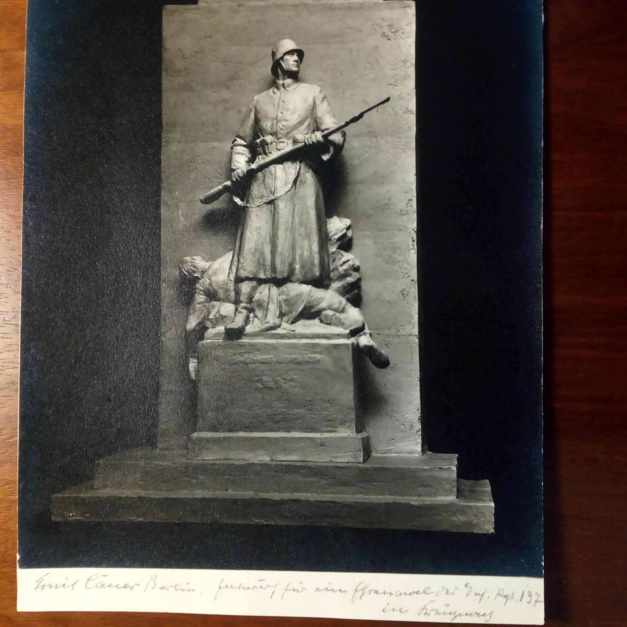 1867-1946, Bildhauer - Foto (ca. kl.4°) m. e.: "Emil Cauer Berlin. Entwurf für ein Ehrenmal des Inf. Reg. 197 in Kreuznach".