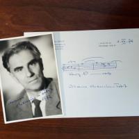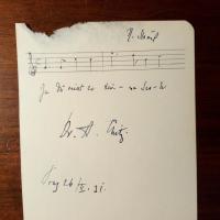 1902-81, Komponist - 8°quer-Blatt mit e. Notenzeile (3 Takte, "König Ni-colo"), U. und D. (Berlin) 1.12.1976, Briefkopf. Beiliegt Pfo. mit U. und Jahr 1972.