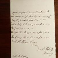1828-99, brit. Jurist - E. Brief mit U., 1 S. 8°, Prägestempel der "Royal Courts of Justice" am Kopf, Altersspuren. Dankt einem Kollegen für dessen "words on Trusts".