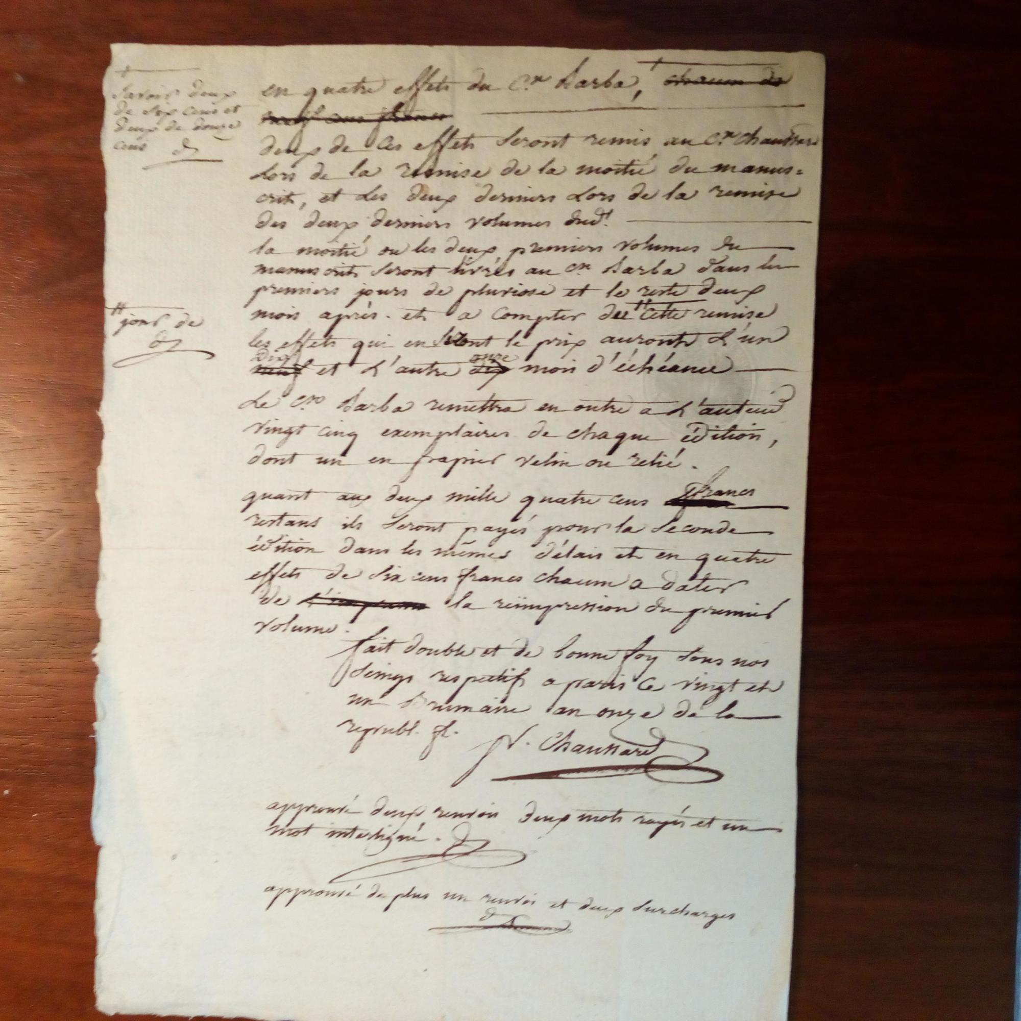 1766-1823, frz. Schriftsteller und Revolutionär- E. Brief mit U., Paris "le vingt et un Brumaire an onze de la republ." (12.11.1804), 2 S. 4°, dicht beschr. An den Pariser Buchhändler Jean-Nicolas Barba (1769-1846): Macht ein Angebot für das (Propaganda-) Buch "Veilleés d'une Courtisane ou Chronique Galante de la monarchie française".