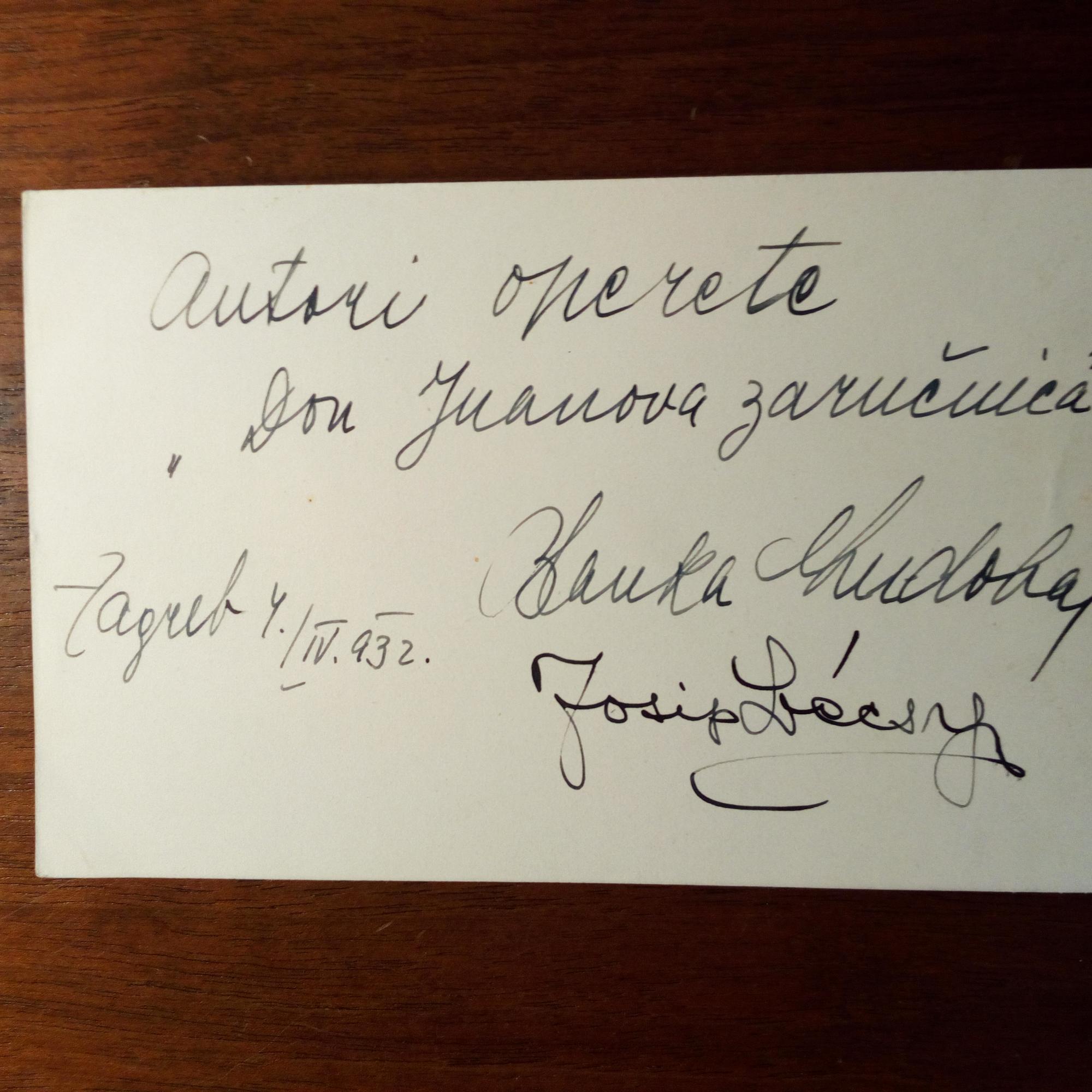 1896-1989, kroat. Dichterin - Karte mit e. "Autori operete "Don Juanova zaru?nica"" und U., Zagreb 4.4.1932. Weitere U. des Komponisten der Operette Josip Décsy (1904-85).