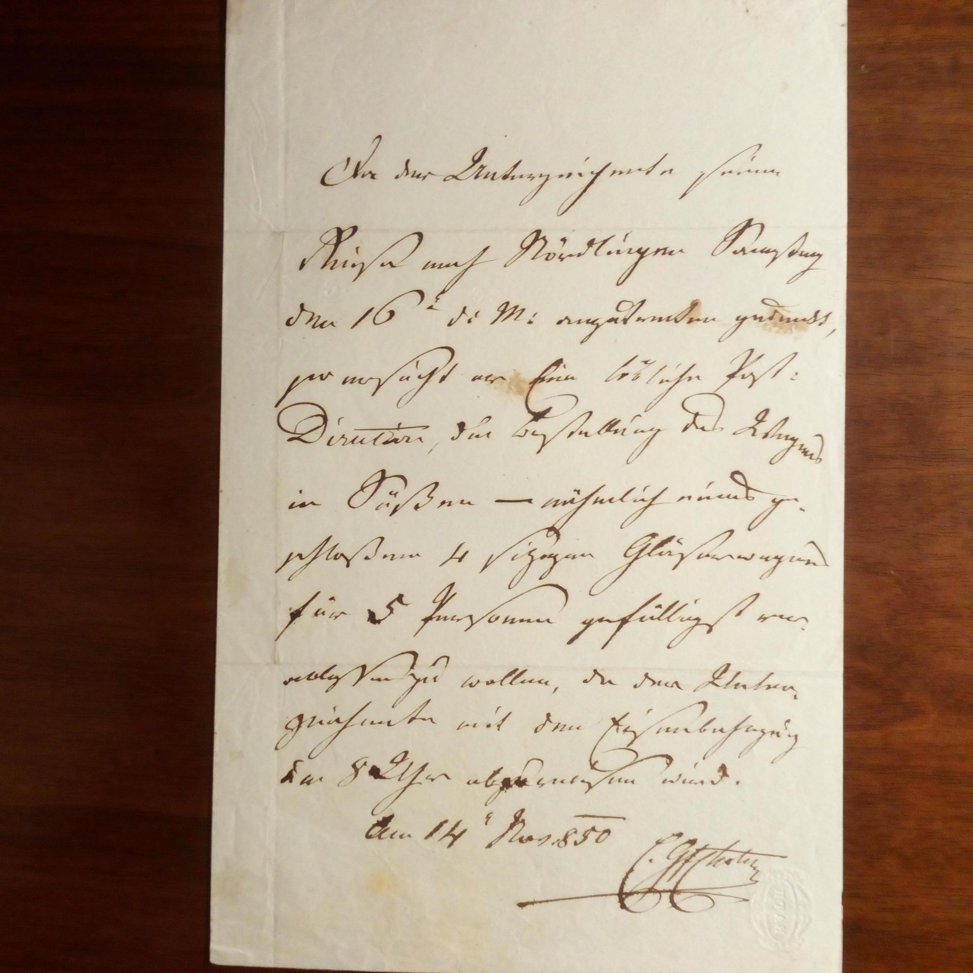 1738-1868, böhm. Burggraf - E. Br. m. U., 4.11.1850, 1 S. 8°. Für eine "Reise nach Nördlingen" bestellt er bei der Post-Direktion "einen geschloßenen 4 sitzigen" Wagen. Beiliegt Presse-Nachruf.