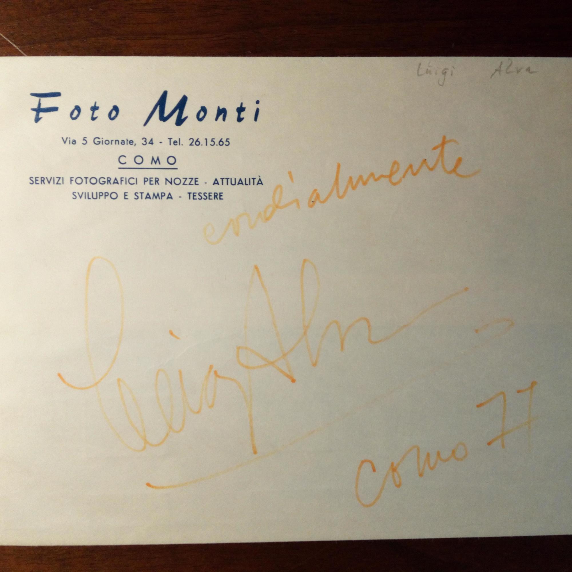 1927-2025, peruan. Sänger (Tenor) - Umschlag der Fa. "Foto Monti" in Como mit E., U. und "Como 77". Beiliegt Programmheft "6. Konzert des Symphonieorchesters des Bayerischen Rundfunks" München 15.2.1968 (Rossini) mit 5 U. auf Titel: Vom Dirigenten Mario Rossi (1902-92) und den Sängern Forbes Robinson (1926-87), Leyla Gencer (1928-2008), Luigi Alva und Bianca Maria Casoni.