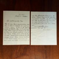 1883-1955, Komponist und Musik-Agent - 2 e. Briefe mit U., Berlin 6. und 9.5.1911, zus. 2 ½ S. 8°. Wohl an die Kinderbuch-Autorin Paula Dehmel (1862-1918, Gattin von Richard D.) in Berlin betr. Vertonung von Gedichten (u.a. ein "Wiegenlied"). Wünscht mehr davon. Er sei durch die Freundin Gertrude Meisner auf sie gekommen u.a.