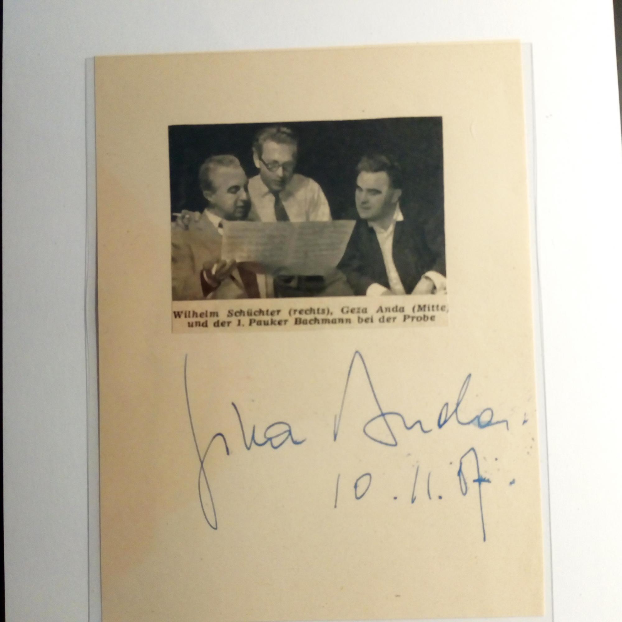 1921-76, ungar.-schweizer Pianist - Schöne U. u. D. 10.11.1967, ger. tintenfleckig, unter mont. kl. Zeitungs-Foto (zus. m. dem Dirigenten Wilhelm Schüchter bei Proben).