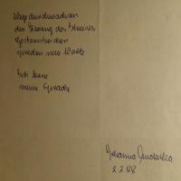 1933-2022, Schriftstellerin - E. Gedicht (6 Z.), U. und D. (Ulm) 2.2.1988. Mit Begleitbr. mit e. Grüßen und U. Dazu ihr Gedicht-Heft "Für L." (1986) mit U. auf Titel. Mit postal. Umschlag.