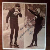 1923-2013, norweg. Eisschnellläufer - Doppelfoto (aus einer Zeitschrift) mit e. Grüßen und U.