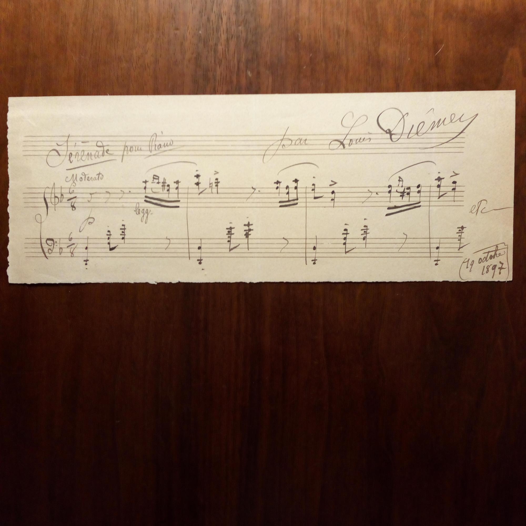 1843-1919, frz. Pianist und Komponist - Streifen aus Notenblatt m. ca. 4 Doppel-Notenz. "Sérenade pour Piano", 19.10.1897.