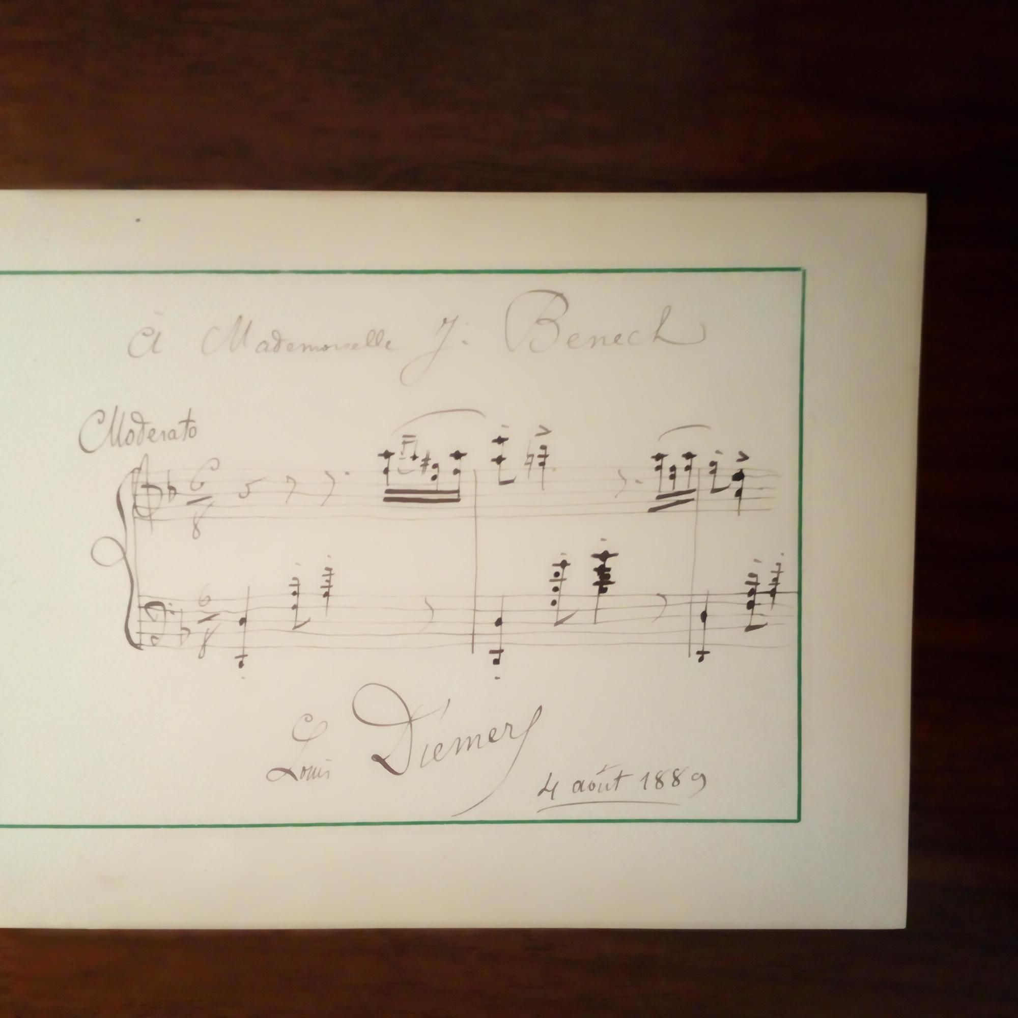 1843-1919, frz. Pianist und Komponist, Direktor des Pariser Konservatoriums - Schönes 8°quer-Blatt mit 2 e. Notenzeilen, Widm. (für "Mlle. Benech") mit U., 4.8.1889.