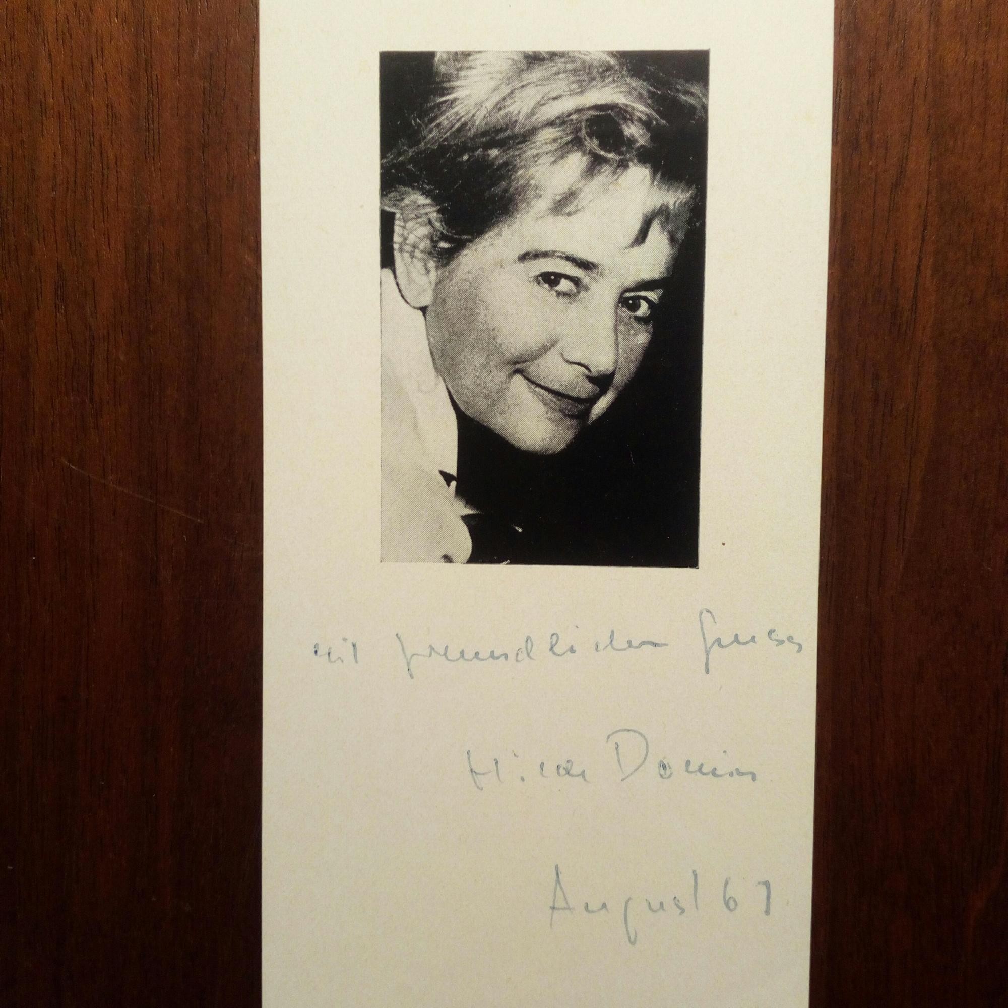 1909-2006, Schriftstellerin - 2 4°-Blätter und Karte, je mit e. kurzem Zitat und U., eines mit Widm. 2.12.1976. Dazu 5 kl. Beilagen (dabei e. postal. Ansichtskarte), je mit U.