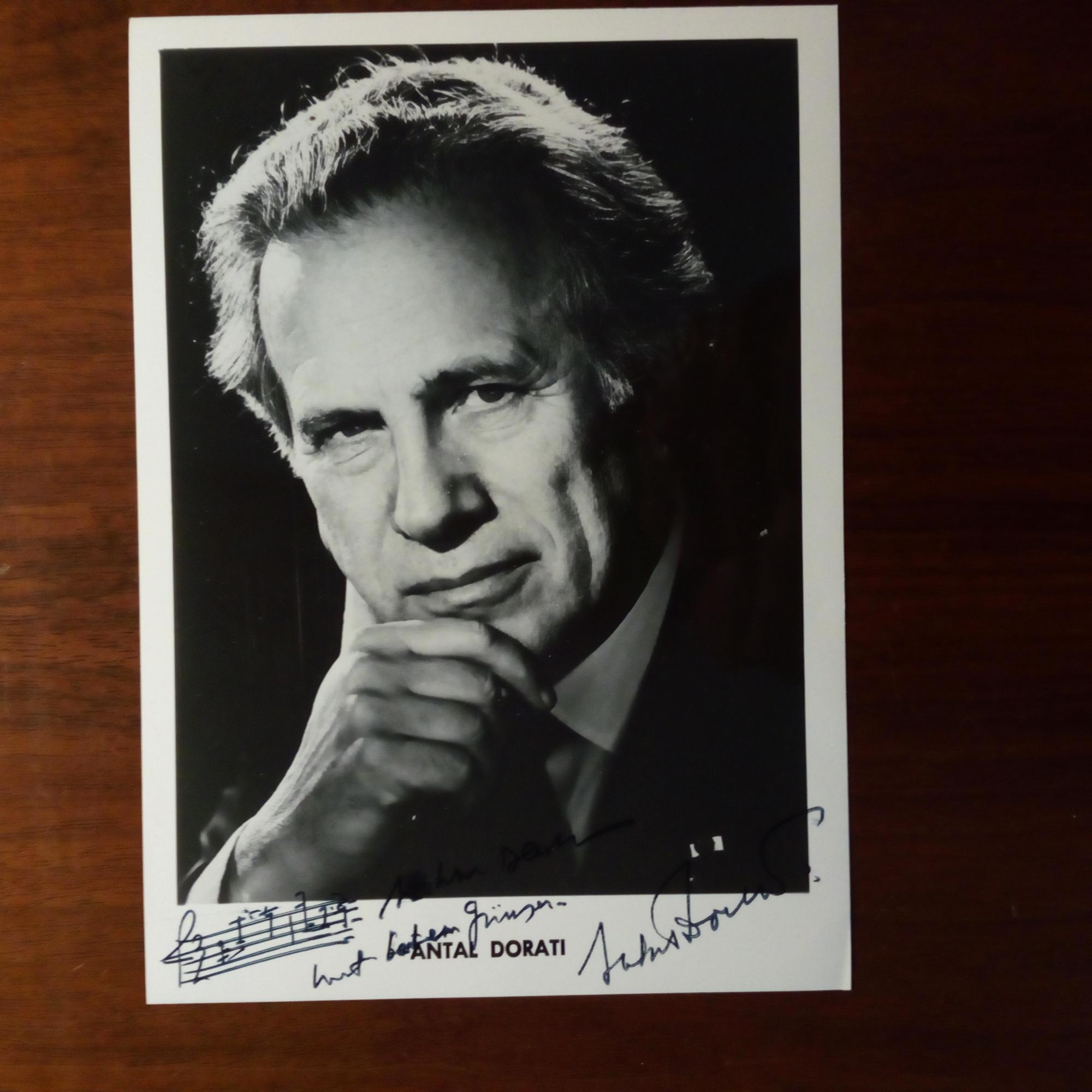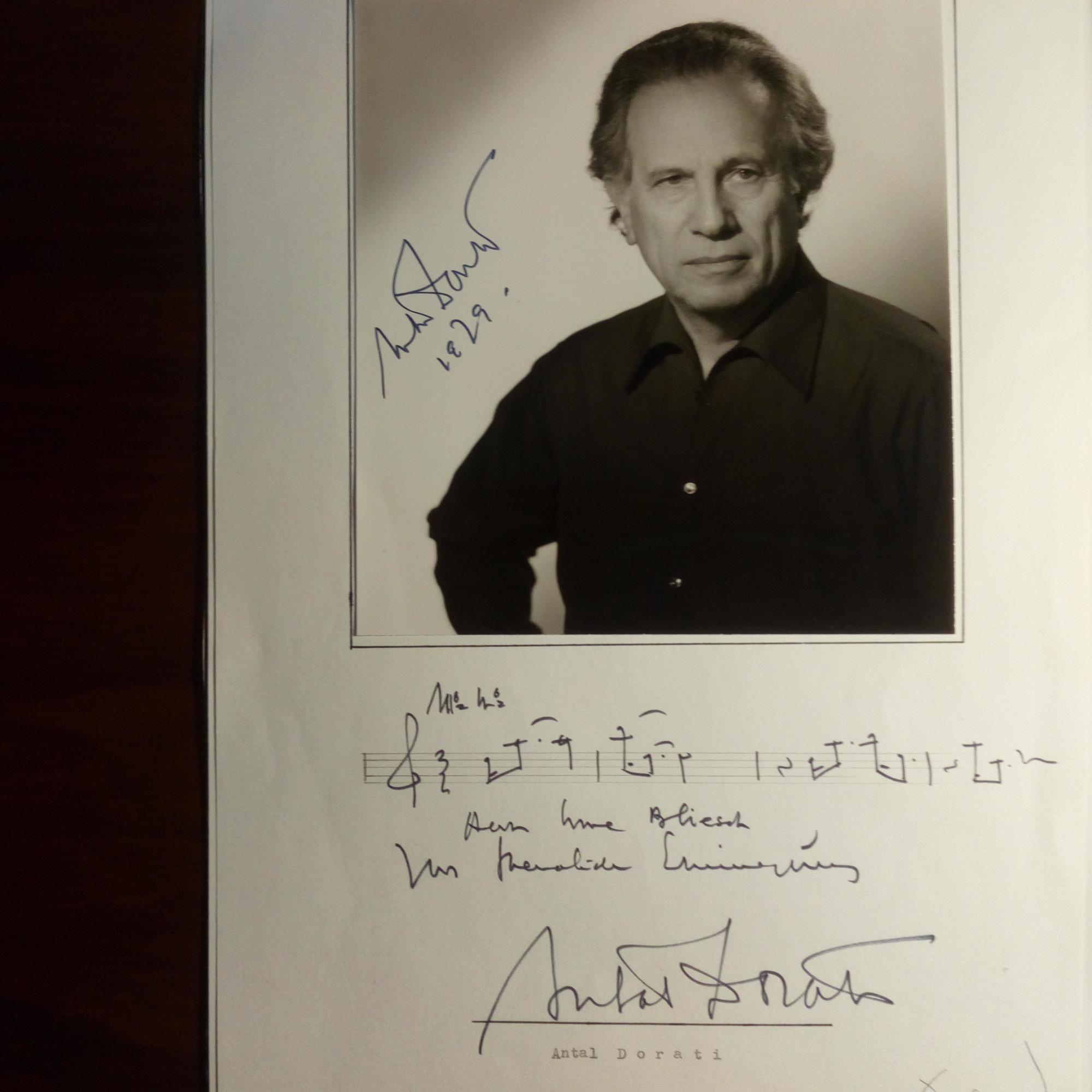 1906-89, ungar.-amerikan. Dirigent und Komponist - E. Notenzeile (ca. 3 Takte), Widm. und U. unter auf 4° mont. großem Fotografen-Porträtfoto, dieses mit U. und Jahr 1979.