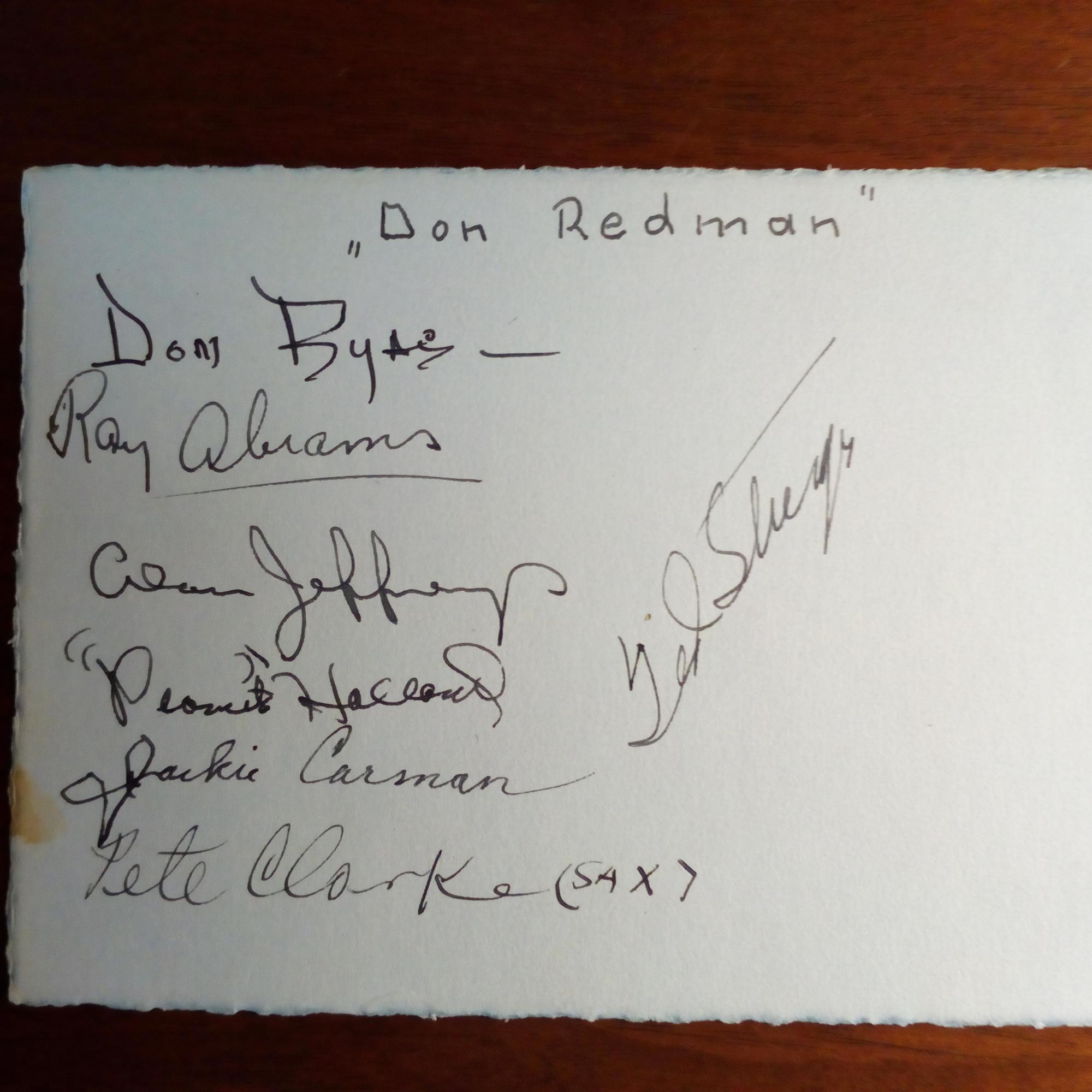 US-Jazz-Band - Karte m. 7 U.: Don Byas, Ray Abrams, Allan Jeffries, Peanuts Holland, Jackie Carman, Pete Clarke (1911-75) und Ted Sturgis. V. and. Hand datiert 3.11.1946. Selten!